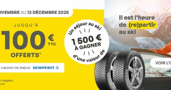 Du 17 novembre au 13 décembre, jusqu’à 100€ offerts pour l’achat de pneus de la marque Semperit et un séjour […]